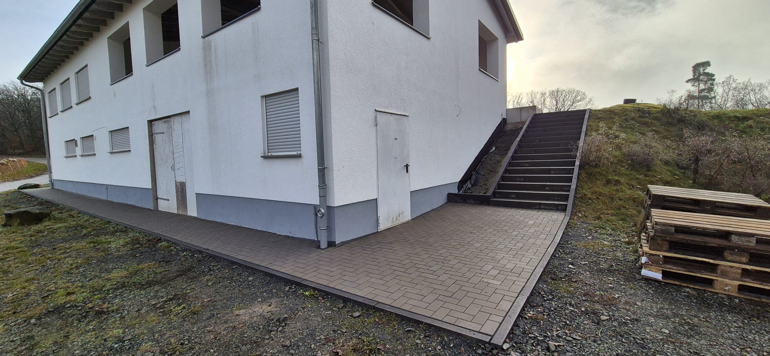 • Außentreppe zum Sportplatz gesetzt und Bereich vor Küche und Getränkelager aufgeschottert