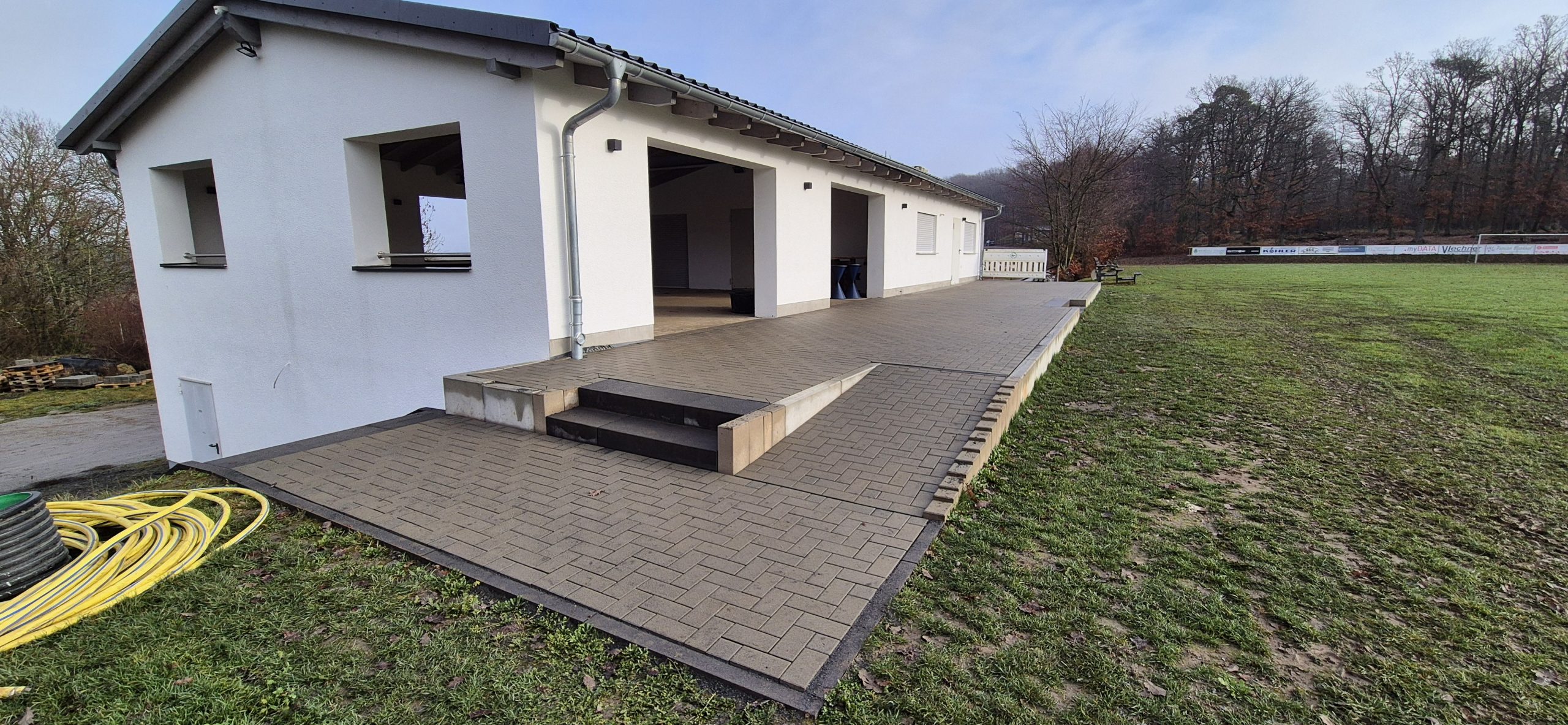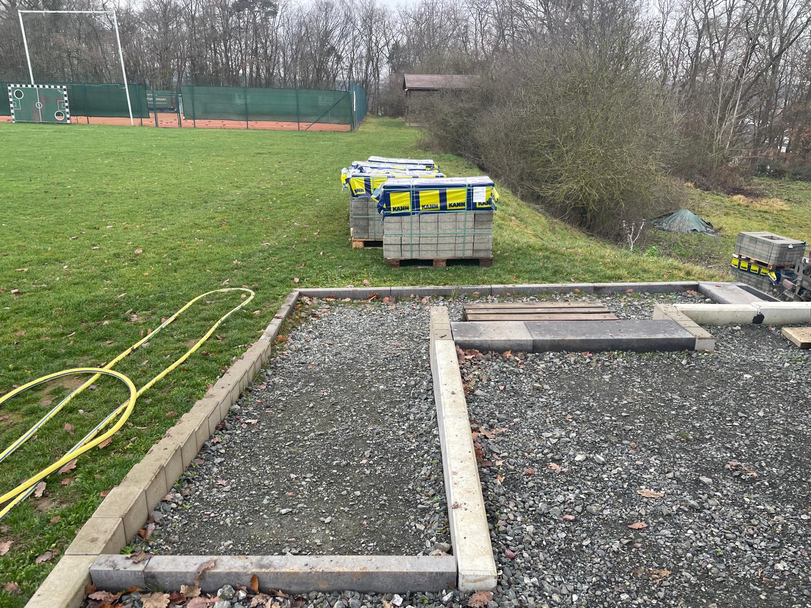 • Das Highlight: Pflasterung der offenen Terrasse und rund um das Sportheim mit großartiger Unterstützung durch Peter Spormann und Helfern – 1  Woche vor Weihnachten 2025!