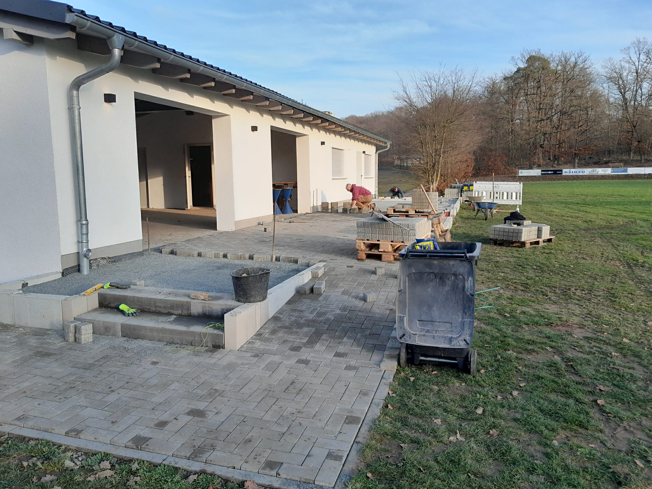 Kurz vor Weihnachten haben wir einen großen Fortschritt bei unserer Sportheimbaustelle verzeichnen können; die Terrasse zwischen Vereinsheim und Sportplatz sowie die das Sportheim umgebenden Wegflächen wurden in der Woche vor den Weihnachtsfeiertagen gepflastert.